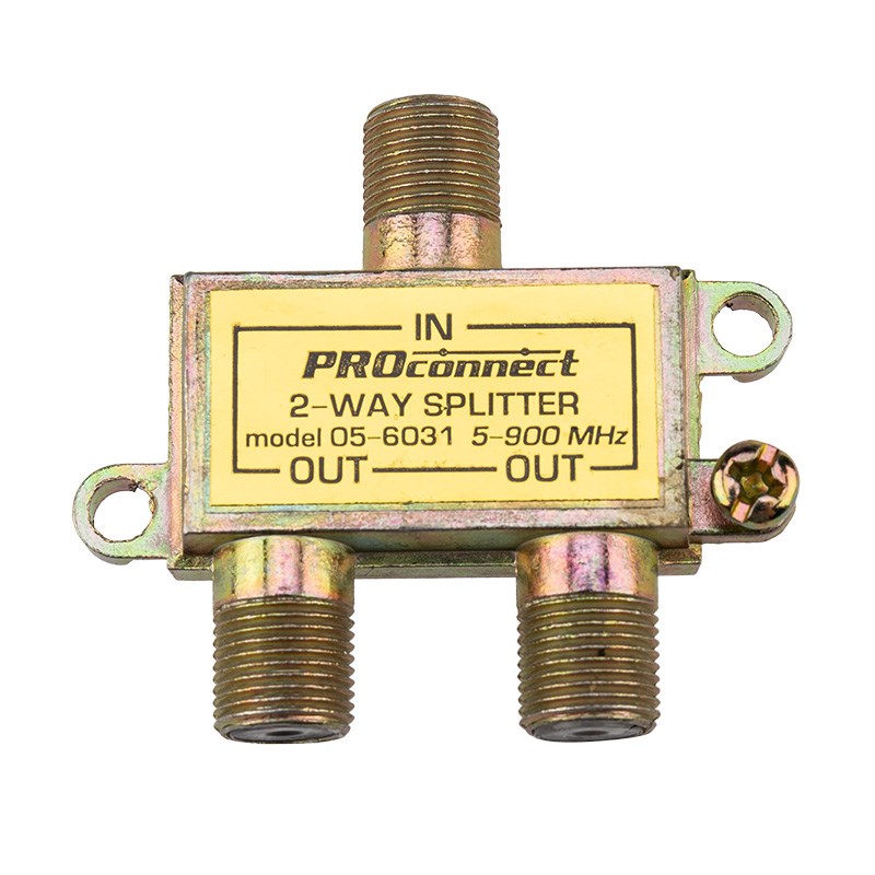 Делитель, также именуемый телевизионным сплиттером, предназначен для равномерного распределения сигнала, идущего от антенны, на нескольких телевизоров или ресивера. Такое устройство применяется в кабельных системах, а также домах и квартирах, где требуется подключить к одной антенне два или более телевизионных аппарата. Данный ТВ сплиттер на 2 выхода под F разъём 900 МГц имеет два выхода для оборудования, соответственно сигнал, поступающий на вход делителя, разделяется пополам и идет на оба выхода. Подключается этот делитель с помощью стандартного F-разъема. Этот ТВ краб применяют для работы с частотами до 900 МГц. Оптимальное соотношение цена/качество для этого сплиттера позволяет эффективно его использовать в условиях качественного антенного сигнала и ограниченного бюджета на кабельную систему.
