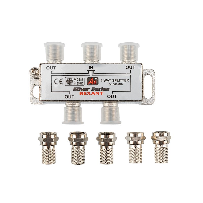 Телевизионный делитель предназначен для телевизионных систем и используется в домах и квартирах, где требуется подключить несколько телевизоров к одной антенне. Этот делитель распределяет поступающий на вход сигнал поровну на его выходы, что обеспечивает одинаково четкое изображение на всех подключенных устройствах. Делитель Rexant имеет четыре выхода для сигнала и подключается с помощью стандартных F-разъемов. Делитель комплектуется необходимыми F-разъемами, что позволяет удобно и быстро монтировать телевизионный кабель и подключать аппаратуру. Пайка внутри делителя осуществляется с использованием золотосодержащего припоя, что позволяет получить сигнал высокого качества и увеличить надежность. Данный делитель подходит для сигналов с частотой 5-1000 МГц, что соответствует стандартному эфирному телевидению.