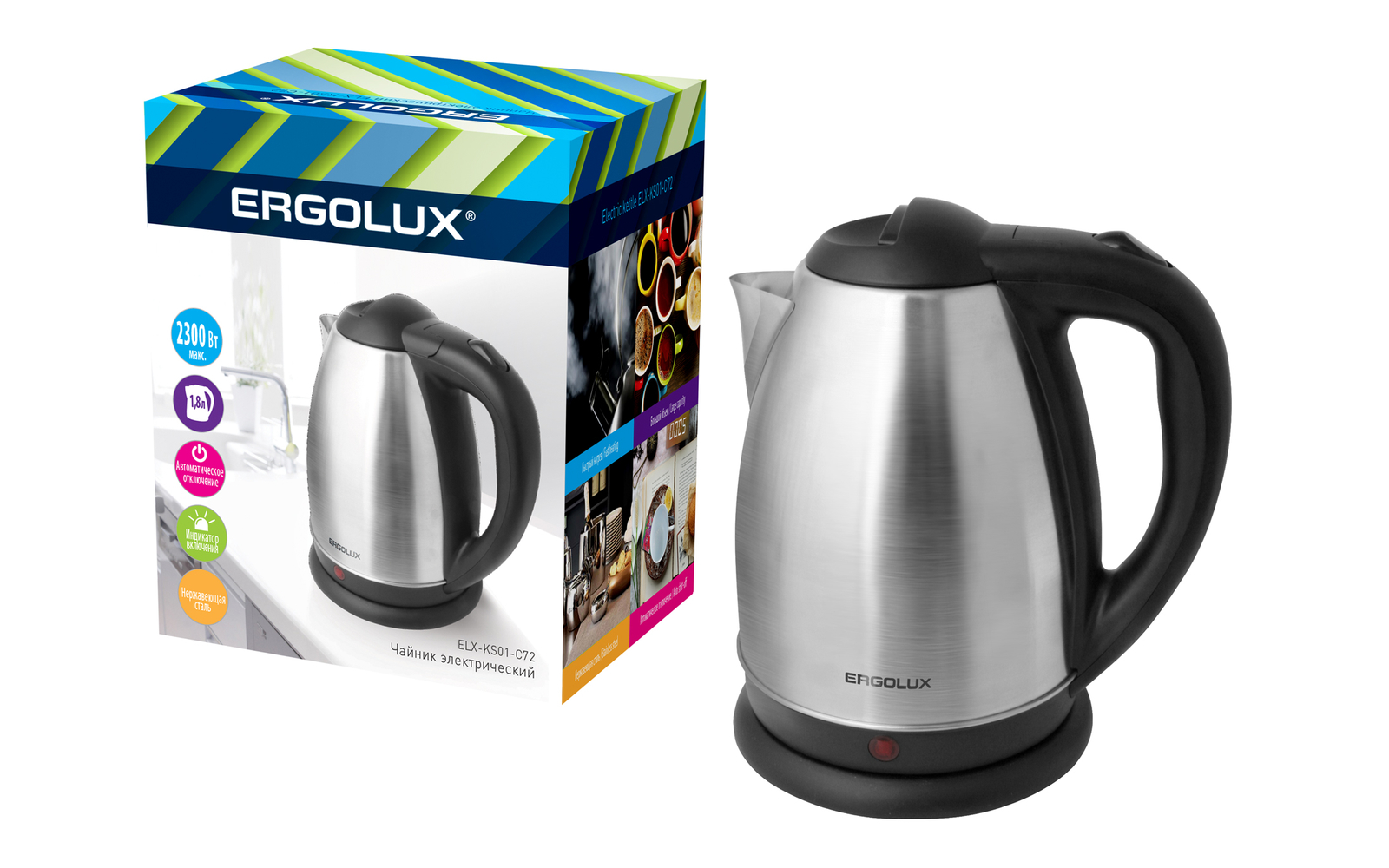 Чайник "ERGOLUX" ELX-KS01-C72 матово-черный нержавеющая сталь 1.8л 160-250В 1500-2300Вт