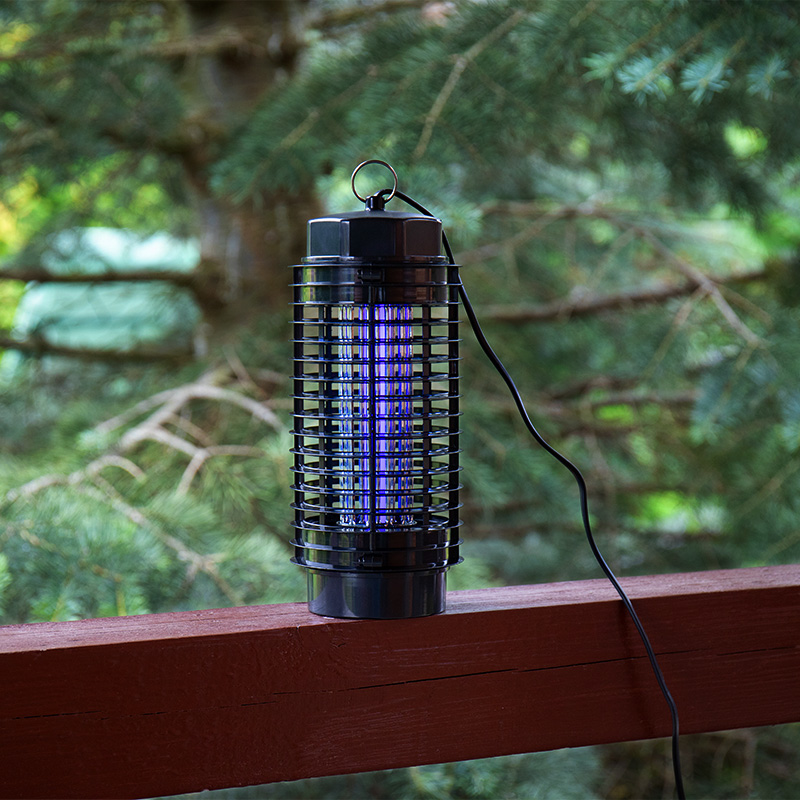 Принцип действия электрического уничтожителя насекомых (комаров, мошкары) - основан на использовании ультрафиолетового излучения в специальном диапазоне (350-400 нм). Многие летающие насекомые весьма чувствительны к данному диапазону УФ-излучения и он привлекает их. Подлетая к лампе, насекомые замыкают собой прутья металлической решетки под напряжением и погибают от электрического разряда. Погибшие насекомые падают на поддон, откуда их легко удалить.