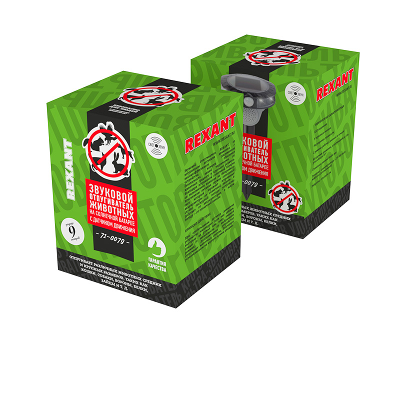 Звуковой отпугиватель животных с датчиком движения REXANT — это современное устройство, которое позволит обезопасить вас и вашу территорию от непрошеных гостей (животных среднего и крупного размера).