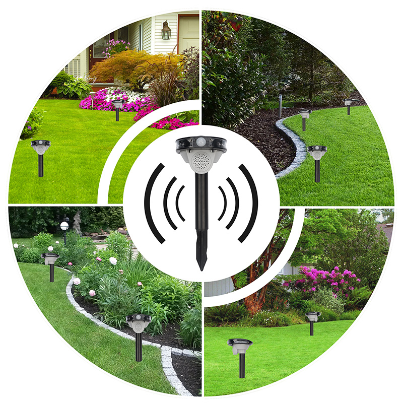 При срабатывании датчика отпугиватель имитирует звук лая собаки, выстрела из ружья или клич хищной птицы (в зависимости от выбранного вами режима). Также устройство отпугивает животных светом благодаря установленным на корпусе ярким диодам.