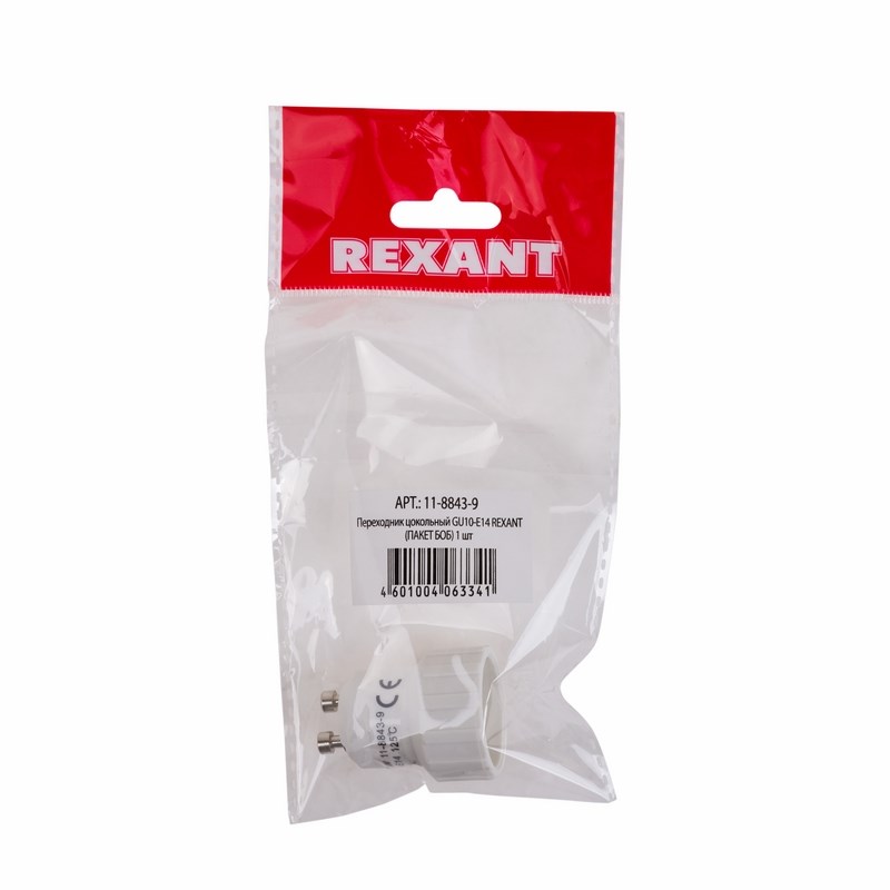 Переходник цокольный GU-10 на Е-14 REXANT применяется при переходе от электрических ламп с цоколем GU10, к электрическим лампам с цоколем Е14.