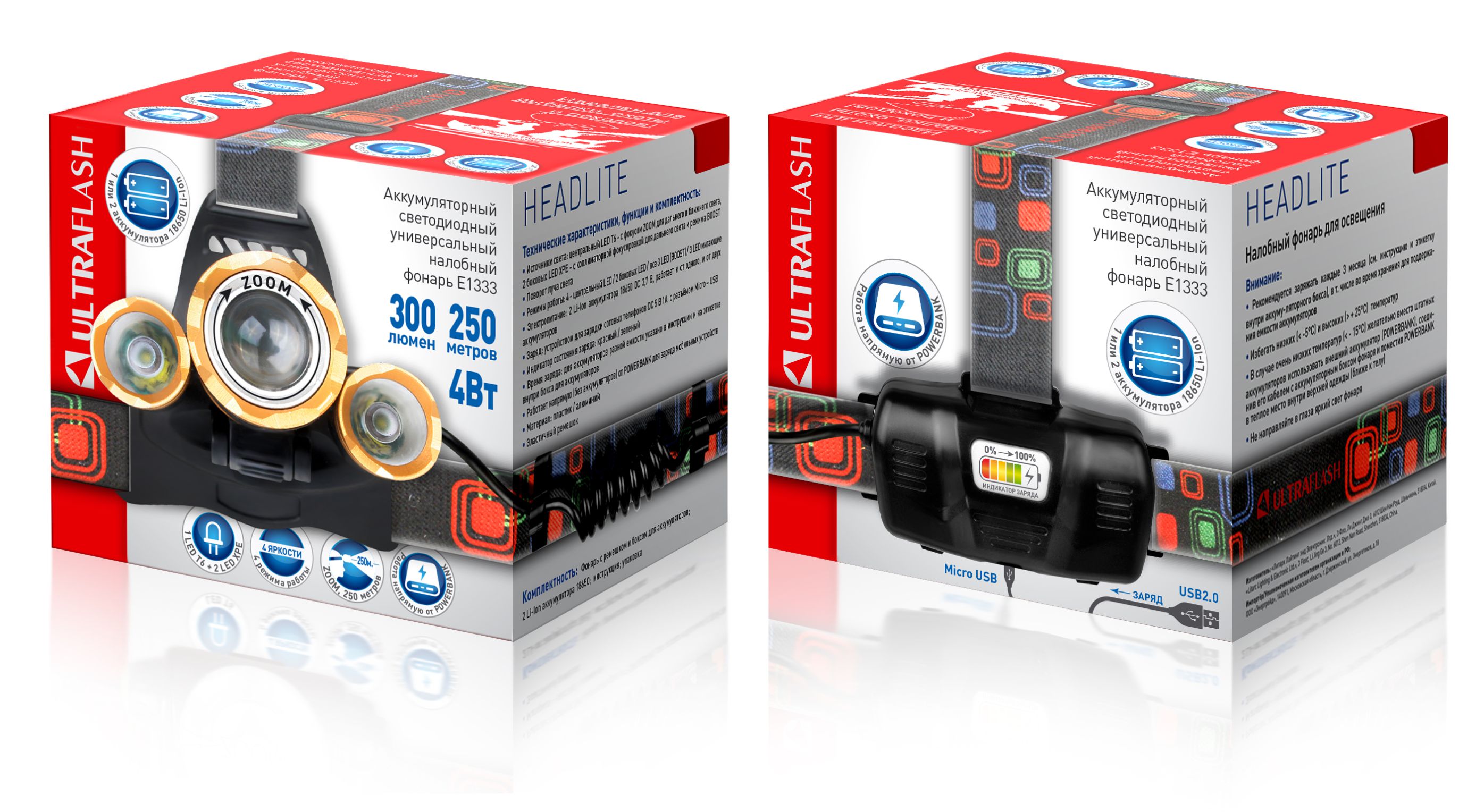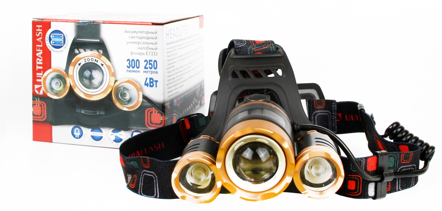 Источники света: светодиод XML-T6 с потребляемой номинальной мощностью 4 Вт, 2 светодиода XPE
