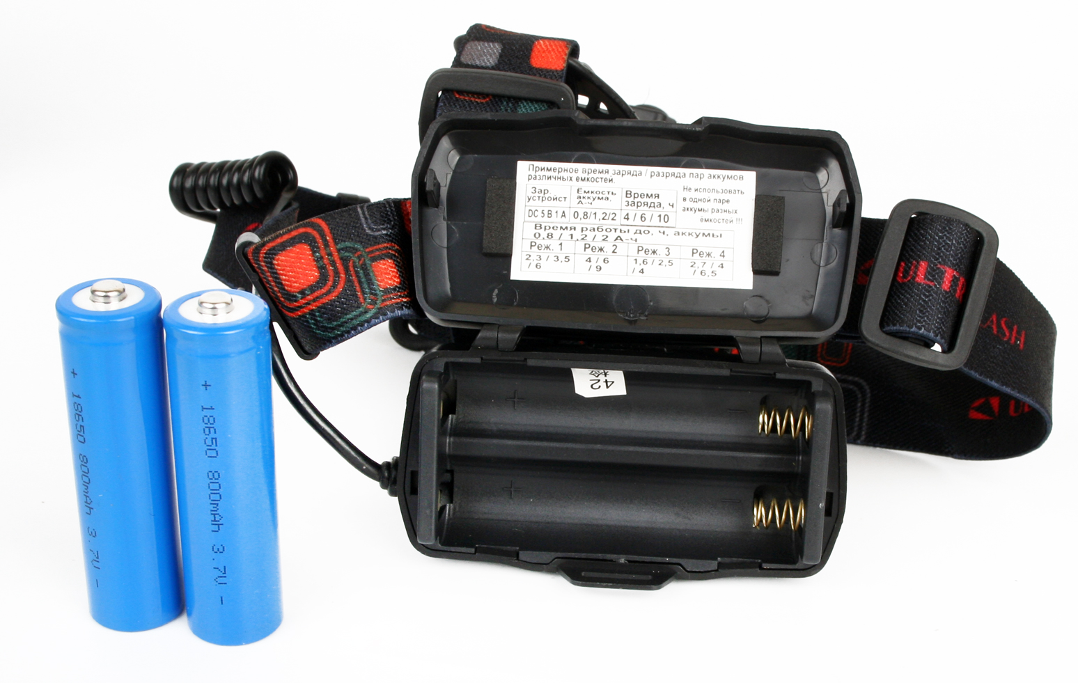 Применяемые элементы питания: 2 литий — ионных аккумулятора типа 18650