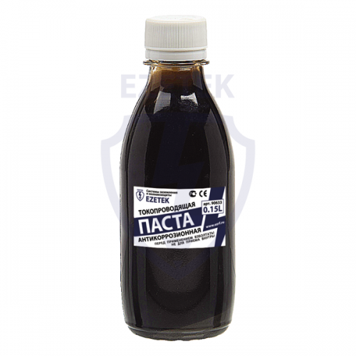 Токопроводящая паста выполнена на основе графита, паста уменьшает электрическое сопротивление между стержнями заземления и муфтами. Также её применяют для дополнительной защиты резьбовых соединений в местах контакта двух деталей от образования оксидной пленки и очагов коррозии. Во время монтажа модульно-штыревой системы заземления все резьбовые соединения обрабатываются пастой.