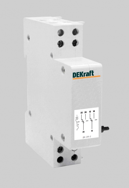 Контакт дополнительный ДК-201 2НО и 2НЗ DEKraft.Контакт дополнительный.Номинальный ток,А 6.Боковое крепление.Способ подключения винтовой.