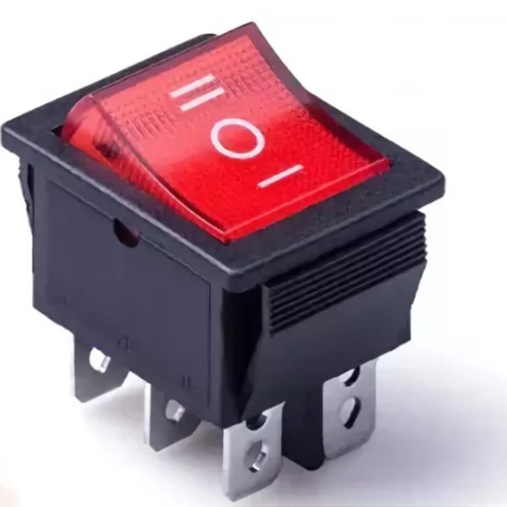Выключатель клавишный прямоугольный 28.5х21.7мм 2 группы 6pin ON-OFF-ON 15A 250V с подсветкой