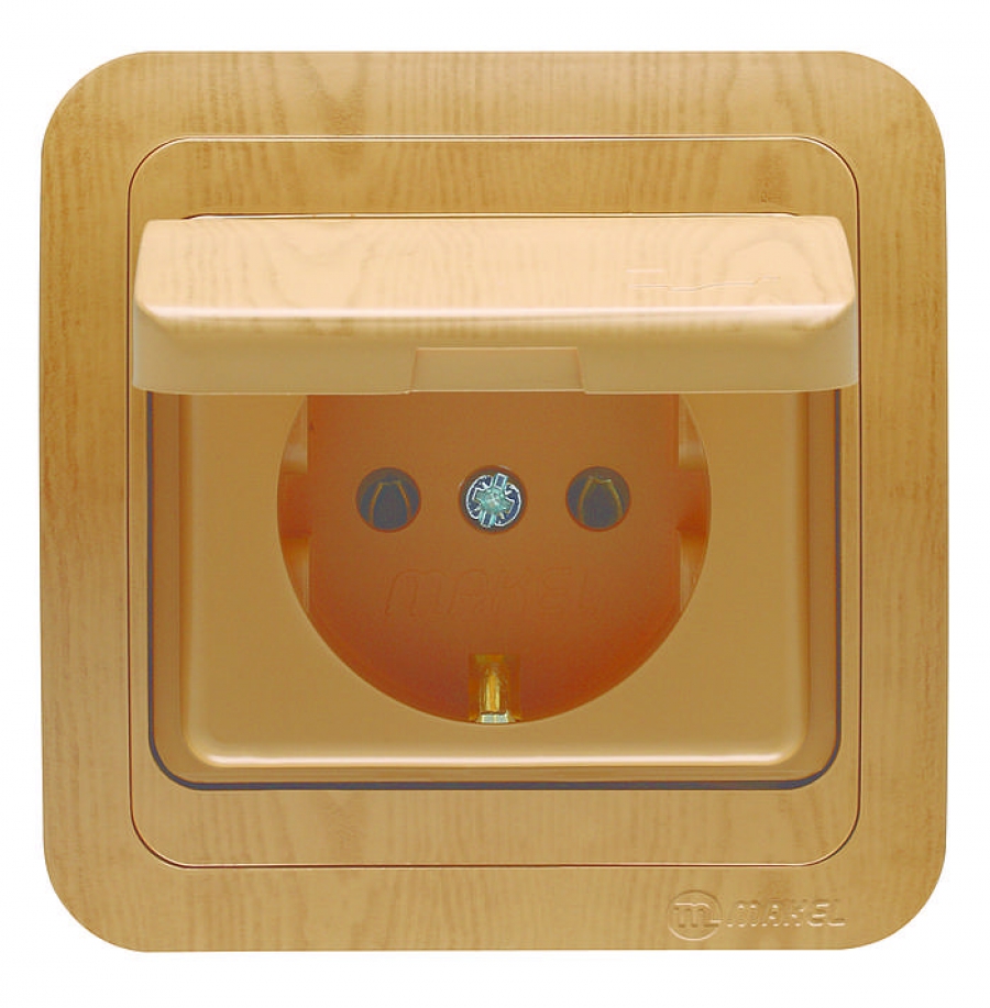 Евророзетка с крышкой "MAKEL" "Mimoza" 1СП дуб
