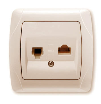 Комбинация телефонной и компьютерной розетки(RJ11+RJ45) для внутреннего монтажа.