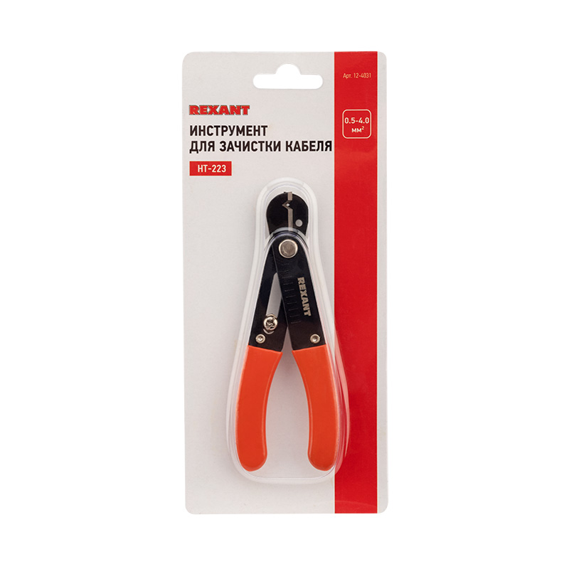 Инструмент для зачистки кабеля HT-223 (HY-223) REXANT предназначен для снятия изоляции и резки проводов сечением 0.5 - 4.0 мм².