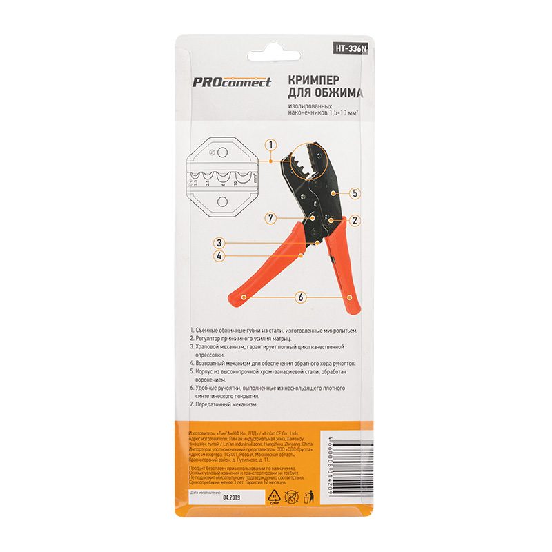 Кримпер для обжима HT-301 N (HY-336 N) универсальный инструмент для обжима изолированных и неизолированных соединительных гильз с диапазоном 1.5–10.0 мм²