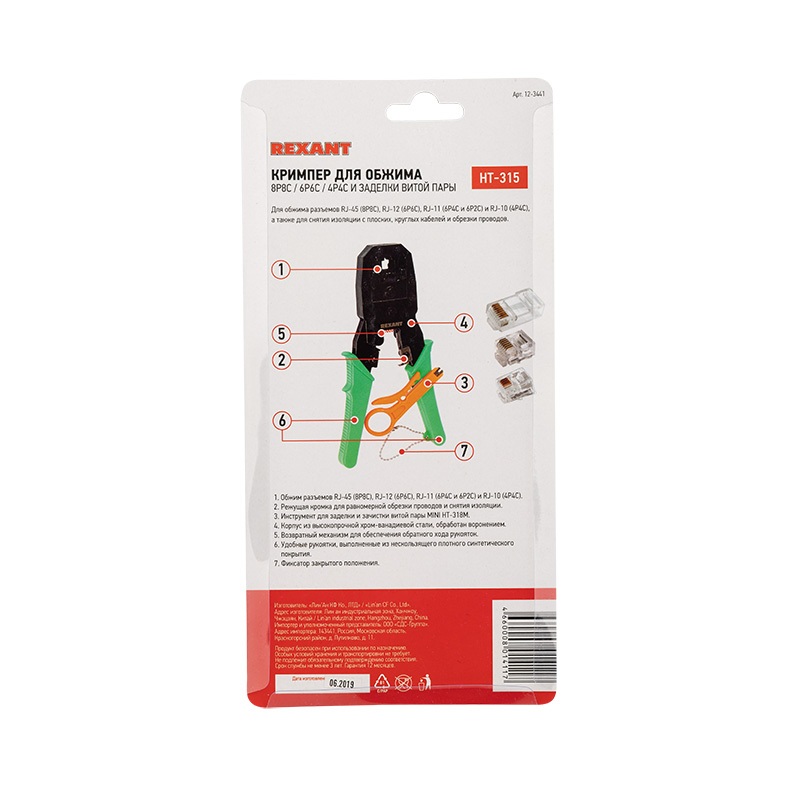 Кримпер REXANT HT-200 — универсальный инструмент для обжима разъемов RJ-45 (8P8C), RJ-12 (6P6C), RJ-11 (6P4C и 6P2C) и RJ-10 (4P4C), а также для снятия изоляции с плоских и круглых кабелей и для обрезки проводов.