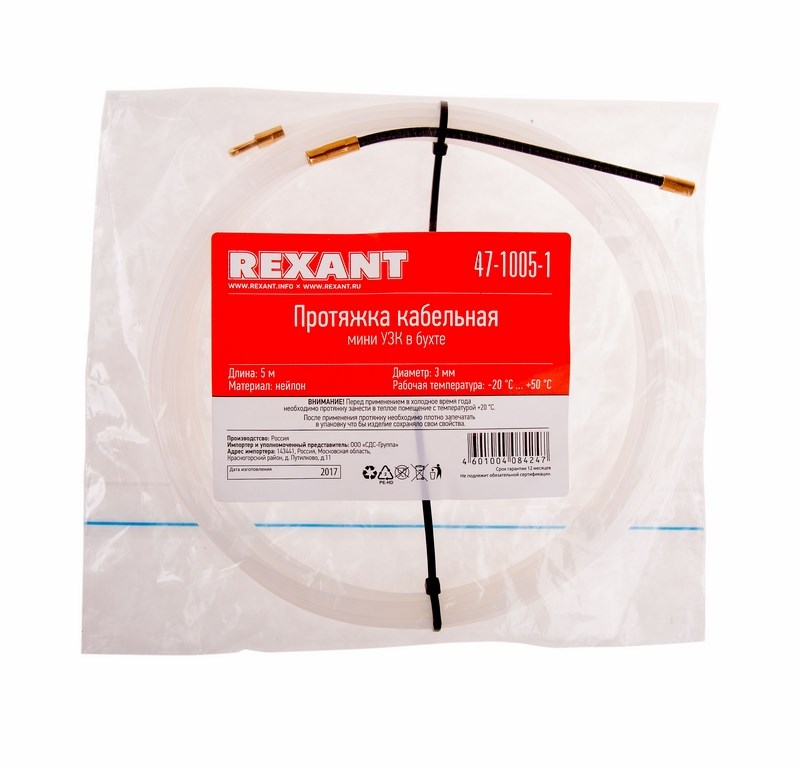 Облегчает протяжку кабеля в стояках и трубах межэтажных конструкций, к которым нет открытого доступа. Снижает трение и облегчает протяжку прутка в канале. Устройство состоит из нейлонового прутка. По степени огнестойкости относится к числу самозатухающих материалов.