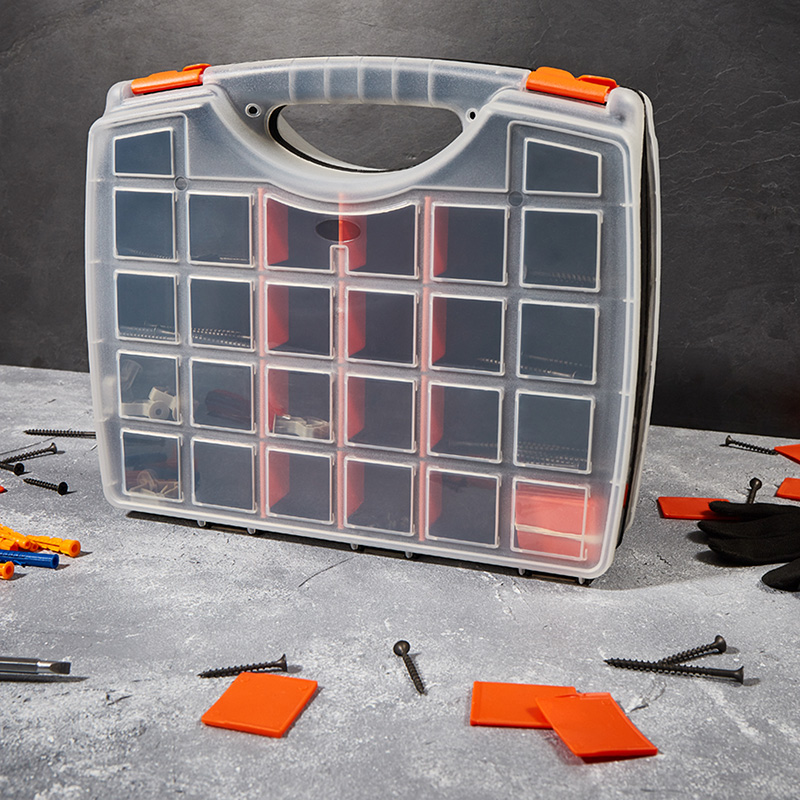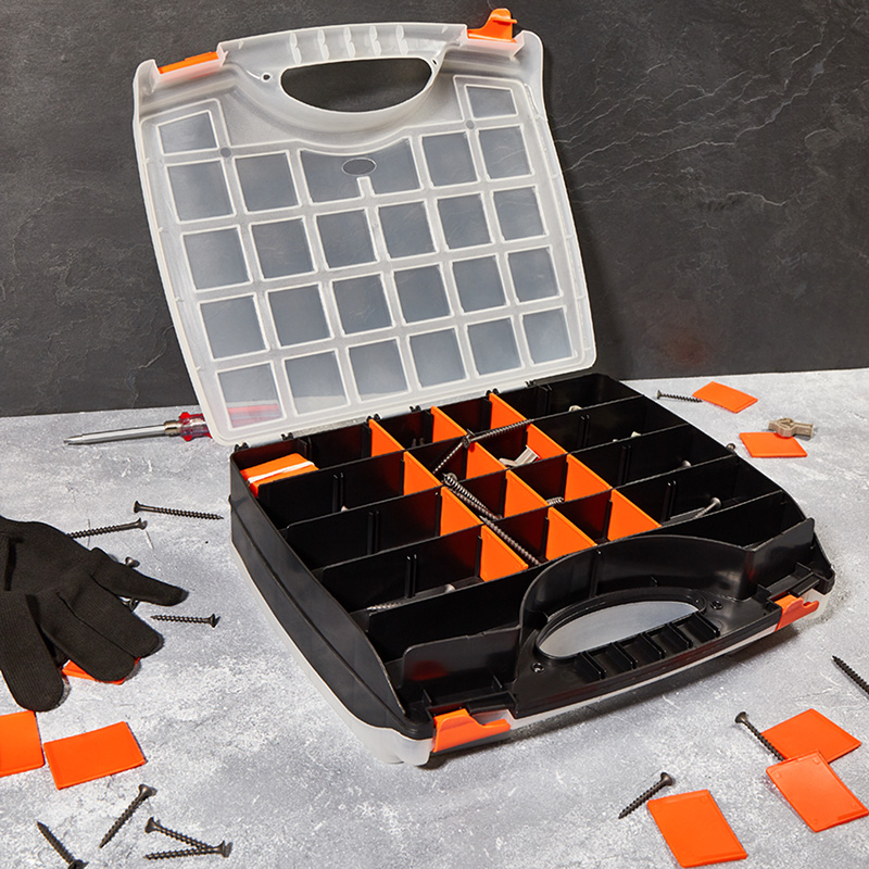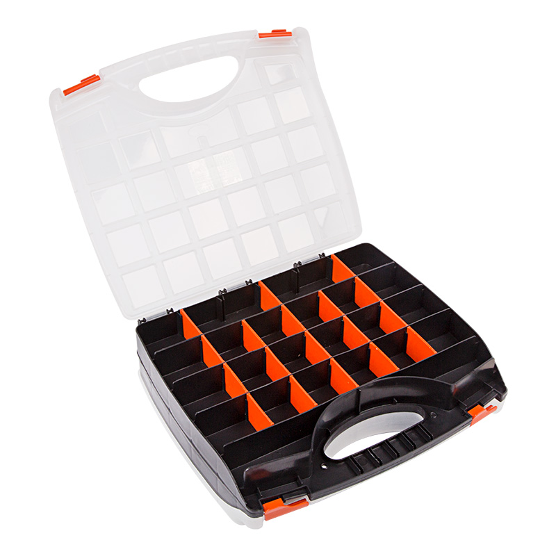 Ящик пластиковый универсальный PROconnect двухсторонний 425х330х85 мм — отличное решение для хранения ручного инструмента, разъемов, расходных материалов, крепежа и рыболовных снастей.