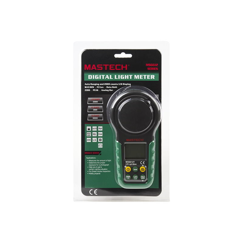 Цифровой люксметр Mastech MS6612 - измеритель освещенности (фотометр) - измерительный прибор, который позволяет измерять освещенность, создаваемую различными источниками света. Фотометр состоит из датчика освещенности (фотодетектора) и счетного устройства.