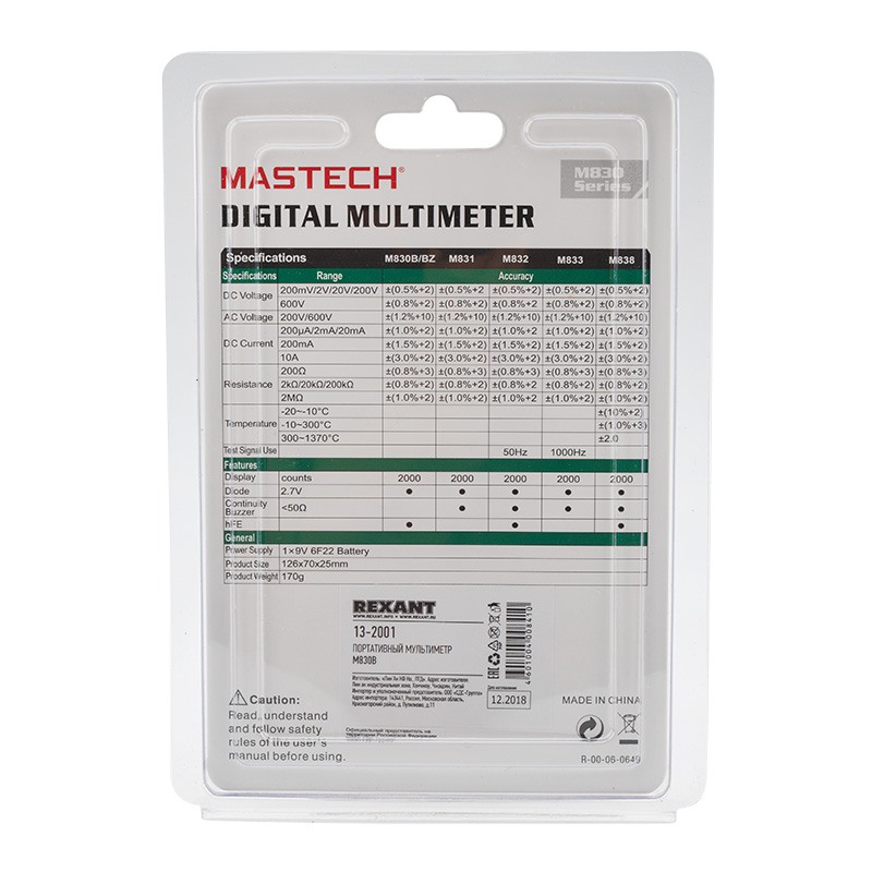 Характеристики: Постоянное напряжение: 200 mВ/2 В/20 м/200 В (±0,5%), 600 В (±0.8%)