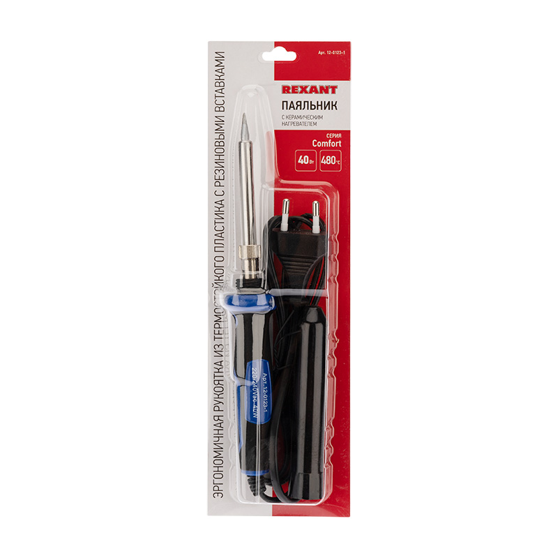 Назначение: Для ручного монтажа радиоэлементов. Его можно использовать как в домашних условиях, так и в профессиональных лабораториях. Паяльник выполнен с керамическим нагревательным элементом, поэтому нагревается быстрее чем нихромовый и при бережном отношении прослужит много долгих лет. Долговечное жало паяльника состоит из медного сердечника покрытого слоем электролитически осажденного железа. Рабочая часть жала электрохимически покрыта слоем олова (что обеспечивает облуживаемость), а остальная поверхность — хромирована. Такие жала могут при соблюдении ряда предосторожностей работать длительное время без разрушения. Напряжение питания 220-240 В 50/60 Гц. Потребляемая мощность 40 Вт. Длина провода 1,35 метра. Удобная эргономичная рукоятка выполнена из термостойкого пластика с резиновыми вставками, она сделает работу с инструментом легкой и приятной.