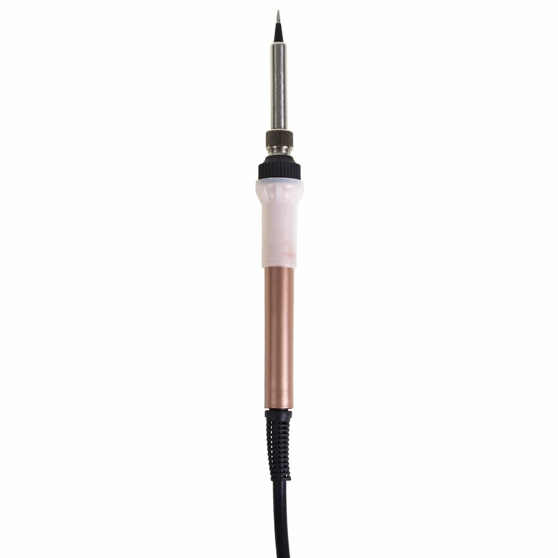 Паяльник выполнен с керамическим нагревательным элементом и долговечным жалом. Острое тонкое жало идеально подойдет для точных работ с электронными компонентами.