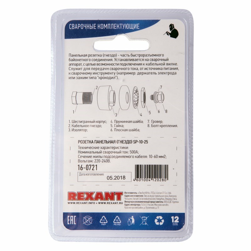 Назначение: Панельная розетка - быстросъемный соединительный разъем (гнездо) для сварочных аппаратов, который применяется для надежного соединения кабелей друг с другом или с источником питания.
