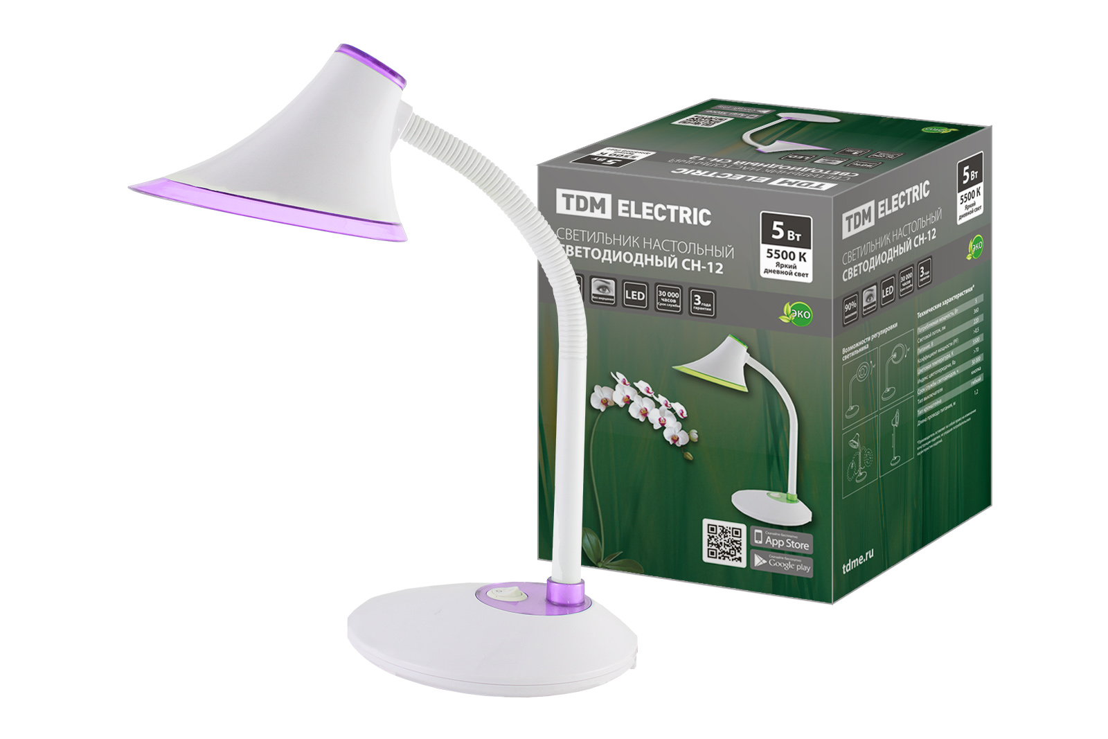 Настольная лампа "TDM" СН-12 светодиодная , 5 Вт, гибкая, выключатель, 5500 К, фиолетовая, 220 В