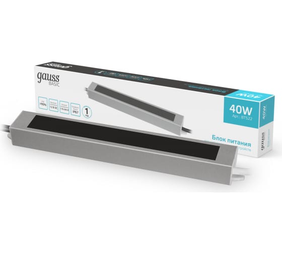 Трансформатор "GAUSS" Basic 12V 40Вт IP67 с разъемами под винт, без влагозащиты