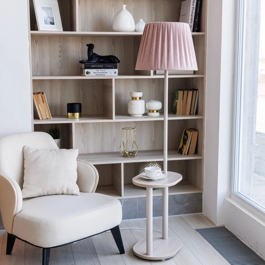 Торшер "Сияние Севера" НТБ 11-60-101 со столом овал Белый с абажуром Ретро пыльная роза