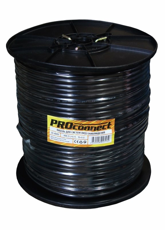 Кабель КВК-П-2 + 2х0.75мм² (96) PROCONNECT предназначен для передачи телевизионных сигналов в системах видеонаблюдения с одновременным подключением питания и/или передачи сигналов управления.Кабель состоит из радиочастотного (коаксиального) кабеля и жил питания, объединенных под единой оболочкой. Коаксиальный кабеля состоит из медного монолитного проводника, диэлектрика из полиэтилена, внешнего проводника из омедненных жил в виде оплетки и оболочке из светостабилизированного полиэтилена PE, аналог кабеля (РК-75-2-11). Жила питания (омедненная) многожильная, сечением 0,75мм² в изоляции из ПВХ. Рабочее напряжение токопроводящей жилы до 600В. Общая оболочка из PE (полиэтилена). Диаметр кабеля 8мм. Кабель КВК без потерь и помех передает видеосигнал и обеспечивает поставку электропитания на расстояние, не превышающее 120 м.