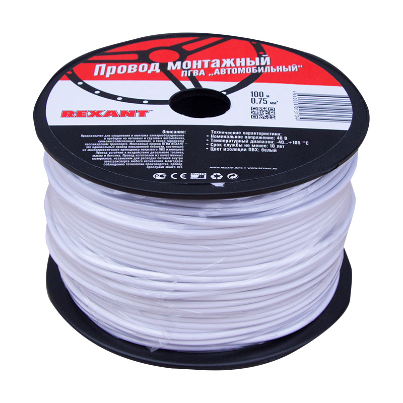 Купить провод "rexant" пгва 1х0.75 мм² монтажный белый бухта 100 м | КилоВатт
