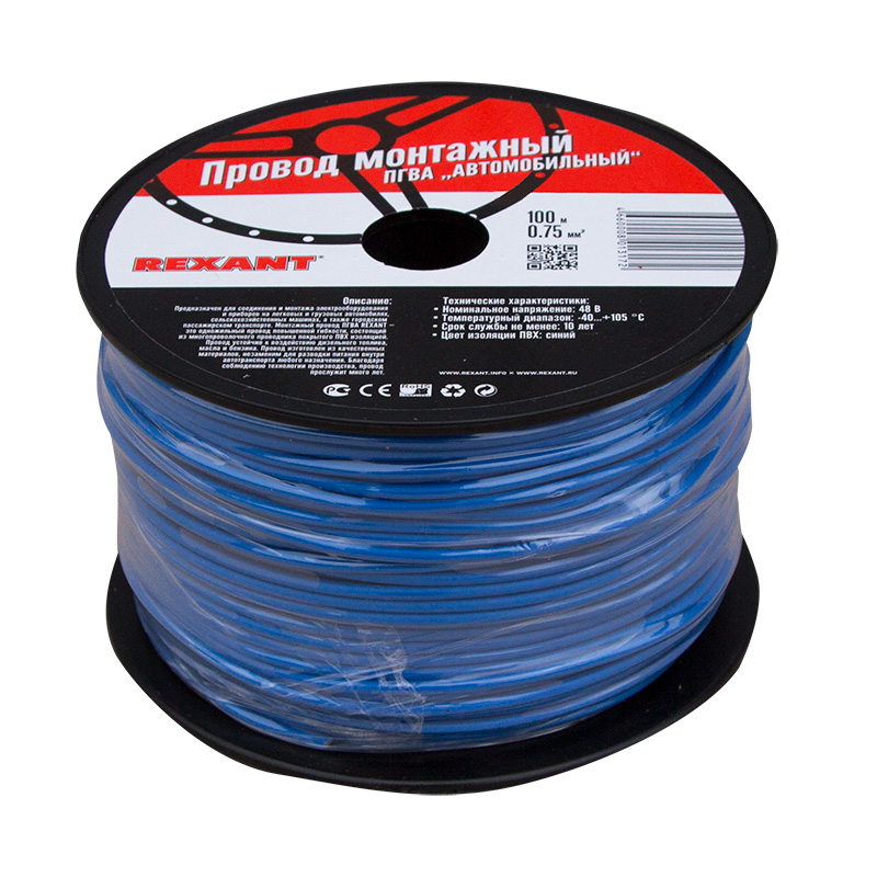 Купить провод "rexant" пгва 1х0.75 мм² монтажный синий бухта 100 м | КилоВатт