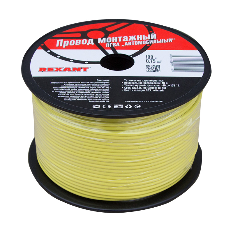 Купить провод "rexant" пгва 1х0.75 мм² монтажный жёлтый бухта 100 м | КилоВатт
