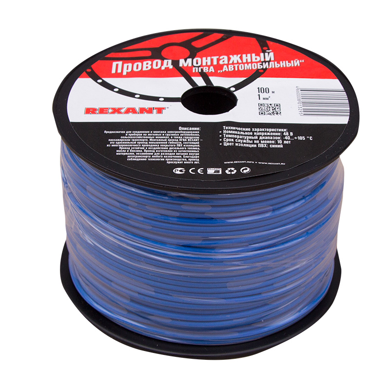 Купить провод "rexant" пгва 1х1.00 мм² монтажный синий бухта 100 м | КилоВатт