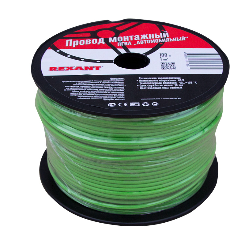 Купить провод "rexant" пгва 1х1.00 мм² монтажный зелёный бухта 100 м | КилоВатт