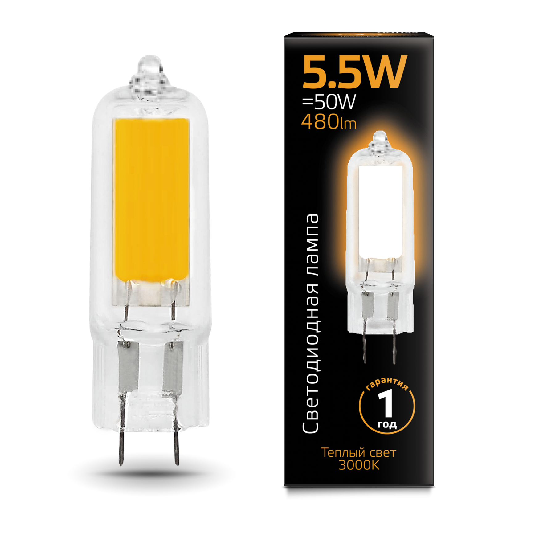 Лампа светодиодная "Gauss" G4 AC220-240V 5.5W 480lm 3000K Glass