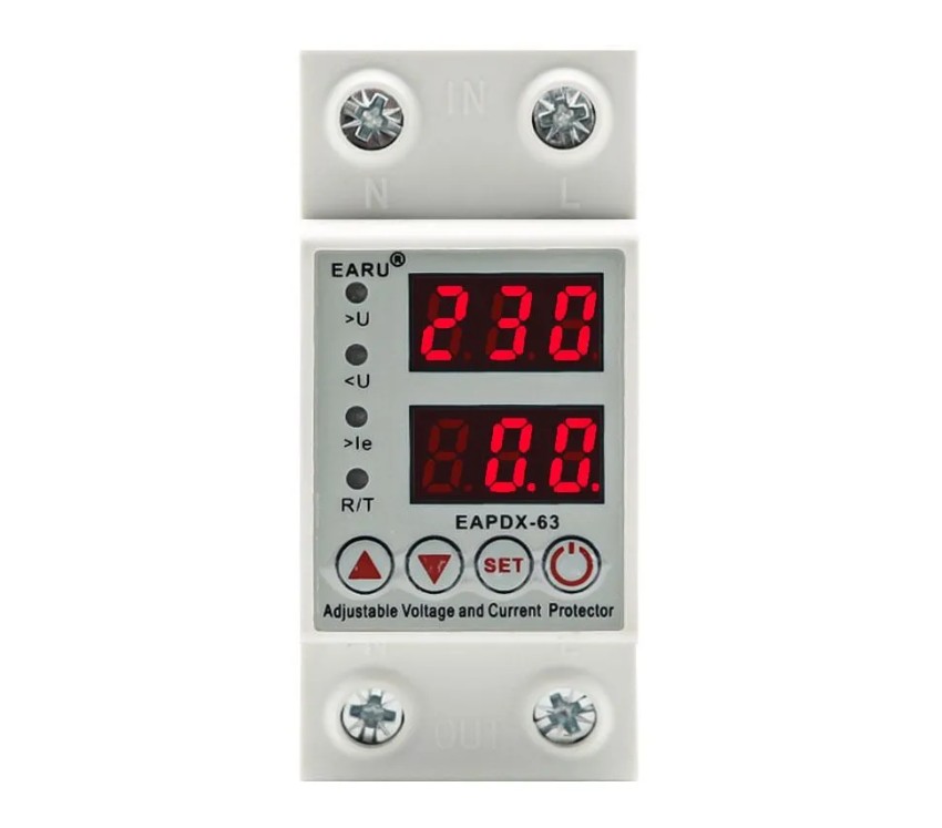 Реле контроля напряжения EAPDX-63А (однофазное) с защитой перегрузки по току