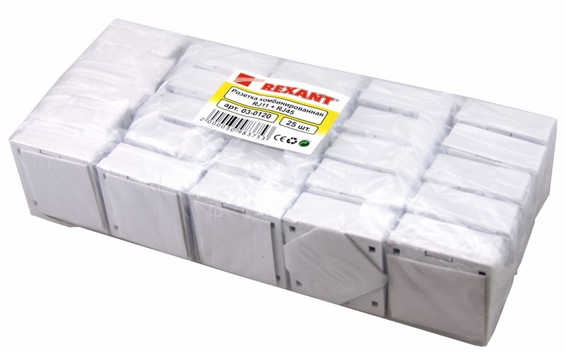 Розетка компьютерная накладная RJ-45+ RJ-11 (2 порта), применяется для подключения компьютеров и телефонов к информационным сетям внутри помещений. Розетка имеет один порт 5е категории RJ-45 и один порт RJ-11 под разъем 6Р-4С. Кабель фиксируется с помощью IDC разъемов (самозажимной контакт с прорезанием изоляции). Розетка устанавливается на стене накладным способом. Порты расположены с торца.