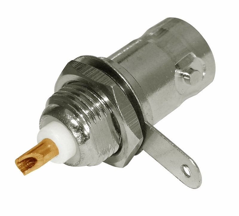 Назначение: Для подключения коаксиального кабеля c волновым сопротивлением 50 или 75 Ом к видеокамерам, видеорегистраторам, мониторам и другим радиоэлектронным устройствам. BNC-гнездо (BNC сокр. от Bayonet Neill Concelman) на корпус длинное - электрический разъем с байонетной фиксацией соединяется с кабелем с помощью пайки и имеет специальную удлиненную форму, учитывая особенности корпуса. Соединение такого типа позволит передать сигнал с минимальным уровнем потерь между проводниками кабеля и гнездом, создавая наиболее качественный контакт. Удлиненное гнездо монтируется на корпус прибора и надежно фиксируется гайкой. BNC-разъем изготовлен из материалов: