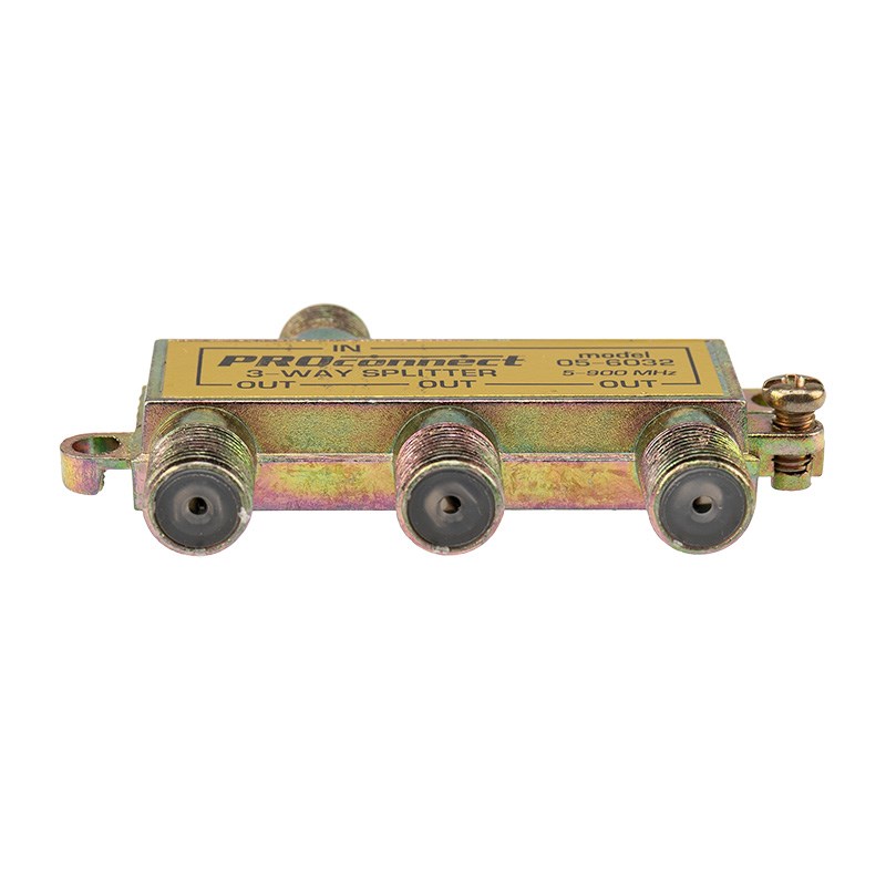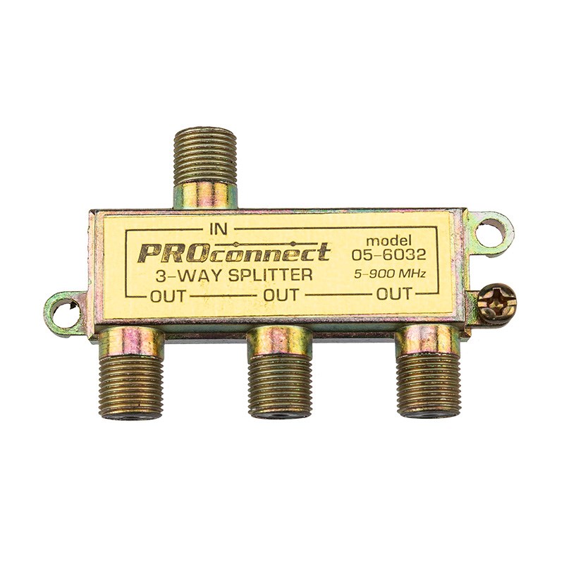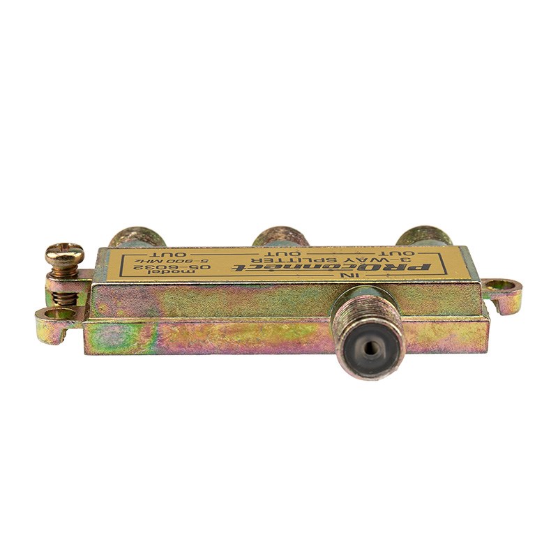 Делитель, также именуемый телевизионным сплиттером, предназначен для равномерного распределения сигнала, идущего от антенны, на нескольких телевизоров или ресивера. Такое устройство применяется в кабельных системах, а также домах и квартирах, где требуется подключить к одной антенне два или более телевизионных аппарата. Данный ТВ сплиттер на 3 выхода под F разъём 900 МГц имеет три выхода для оборудования, соответственно сигнал, поступающий на вход делителя, разделяется на три равные части. Подключается этот делитель с помощью стандартного F-разъема. Этот ТВ краб применяют для работы с частотами до 900 МГц. Оптимальное соотношение цена/качество для этого сплиттера позволяет эффективно его использовать в условиях качественного антенного сигнала и ограниченного бюджета на кабельную систему.