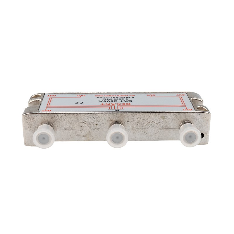 Телевизионный делитель это удобное средство для разделения сигнала на несколько равных частей. Антенные делители ,также называемые телевизионные сплиттеры часто используются, когда требуется подключить один телевизионный кабель, идущий от антенны, сразу к нескольким телевизорам или ресиверам. Особенно это актуально в многокомнатных квартирах или многокомнатных загородных домах. Делитель имеет один вход под F разъем и шесть выходов, также под F разъемы. Сигнал, подающийся на вход делителя, делится на две равные части и передается на выходы. Для подключения кабелей используются стандартные F-разъемы. Полоса пропускания делителя от 5 до 2500МГц позволяет использовать его в системах спутникового телевидения. Качественно изготовленный ТВ сплиттер REXANT долго и надежно прослужит в составе телевизионной системы, делая удобной эксплуатацию нескольких телевизоров.