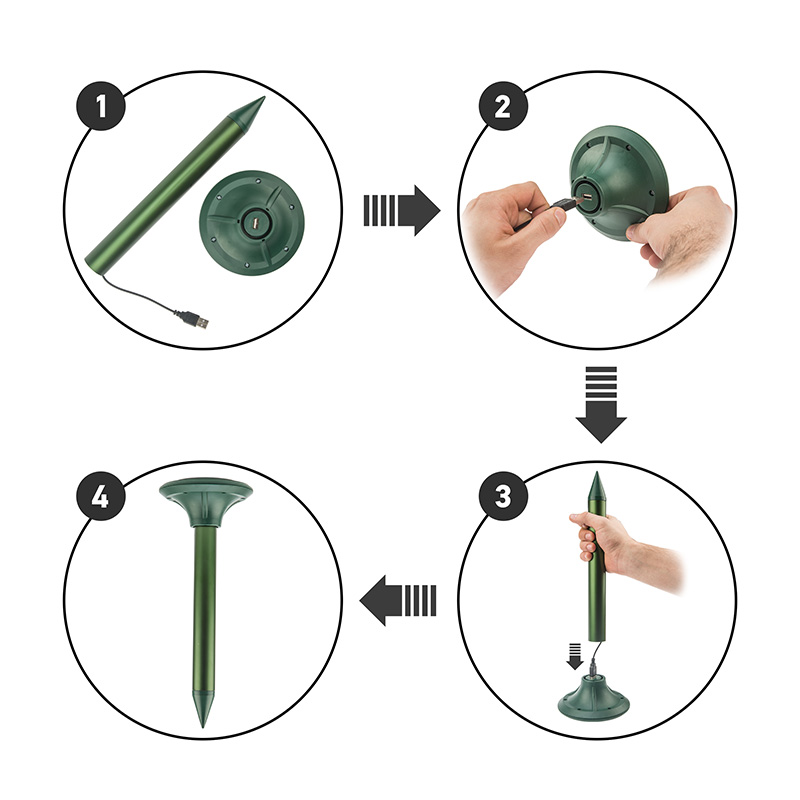 Ультразвуковой отпугиватель на солнечной батарее REXANT предназначен для борьбы с земляными вредителями, такими как: кроты, землеройки, полевые мыши, медведки, змеи. Земляные вредители обладают низким зрением или вовсе слепы, но имеют хороший слух и крайне чувствительны к определенным типам вибрации почвы. Отпугиватель REXANT способен создавать вибрацию, которая предупреждает земляных животных об опасности и способствует их скорейшему исчезновению. Устройство безопасно для людей и домашних животных, не содержит химикатов.