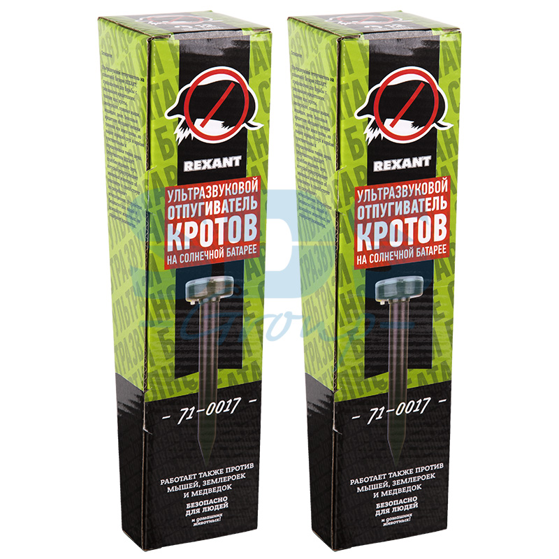 Состав набора: ультразвуковой отпугиватель кротов на солнечной батарее REXANT R20 - 2 шт.