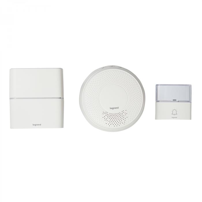 Беспроводной звонок Legrand из серии "премиум" арт. 094272 выполнен в белом цвете, обладает радиусом действия до 200 метров на открытом пространстве и оснащен 30 мелодиями. Так же есть возможность настроить звук через подключение MP3