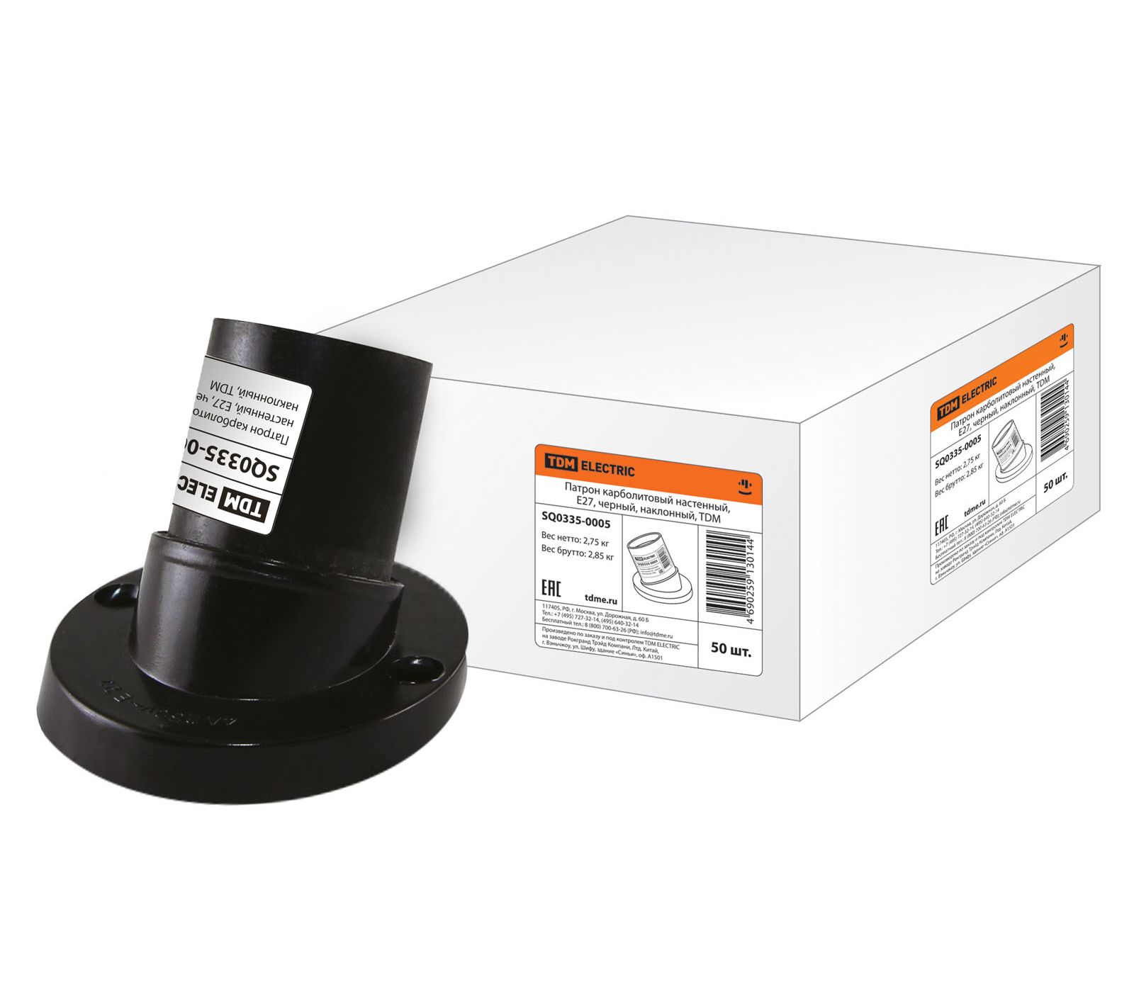 Наклонный карболитовый настенный патрон Е27, черный используется для фиксации ламп и подведения их к электрической сети при подключении бытовых или промышленных источников освещения. Патрон имеет керамическую центральную вставку, которая обладает пожаробезопасными свойствами. Корпус патрона выполнен из электроизоляционного материала - карболита. Он так же обладает термоустройчивостью, не подвержен коррозии, не разрушается под действием агрессивных сред.
