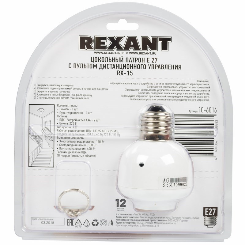 вы сможете управлять освещением дистанционно с помощью пульта дистанционного управления. Данный прибор идеально подходит в местах где не требуется или не возможно вывести отдельный выключатель для лампочки, беседки, гаражи, технические помещения, пролеты лестниц.