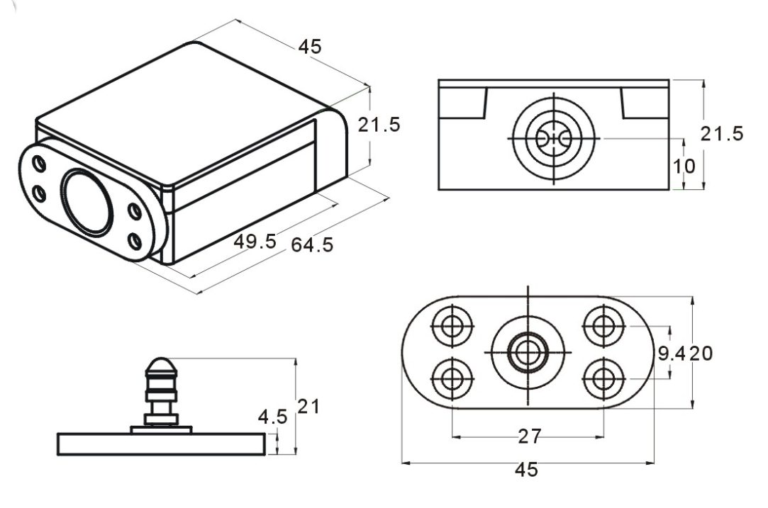 Габаритные размеры: 49,5х21,5х45мм