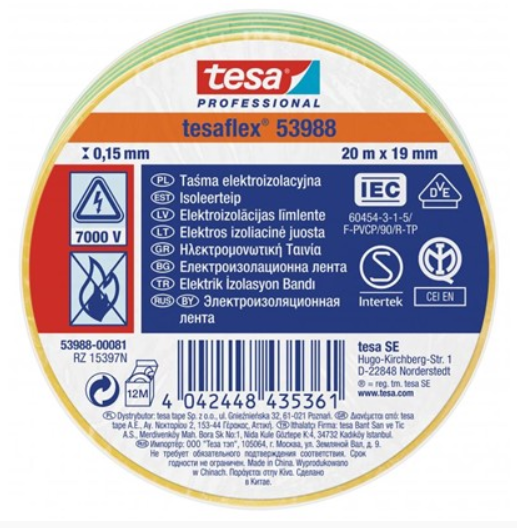 Изолента ПВХ "TESA" 20м*19мм желто-зеленая