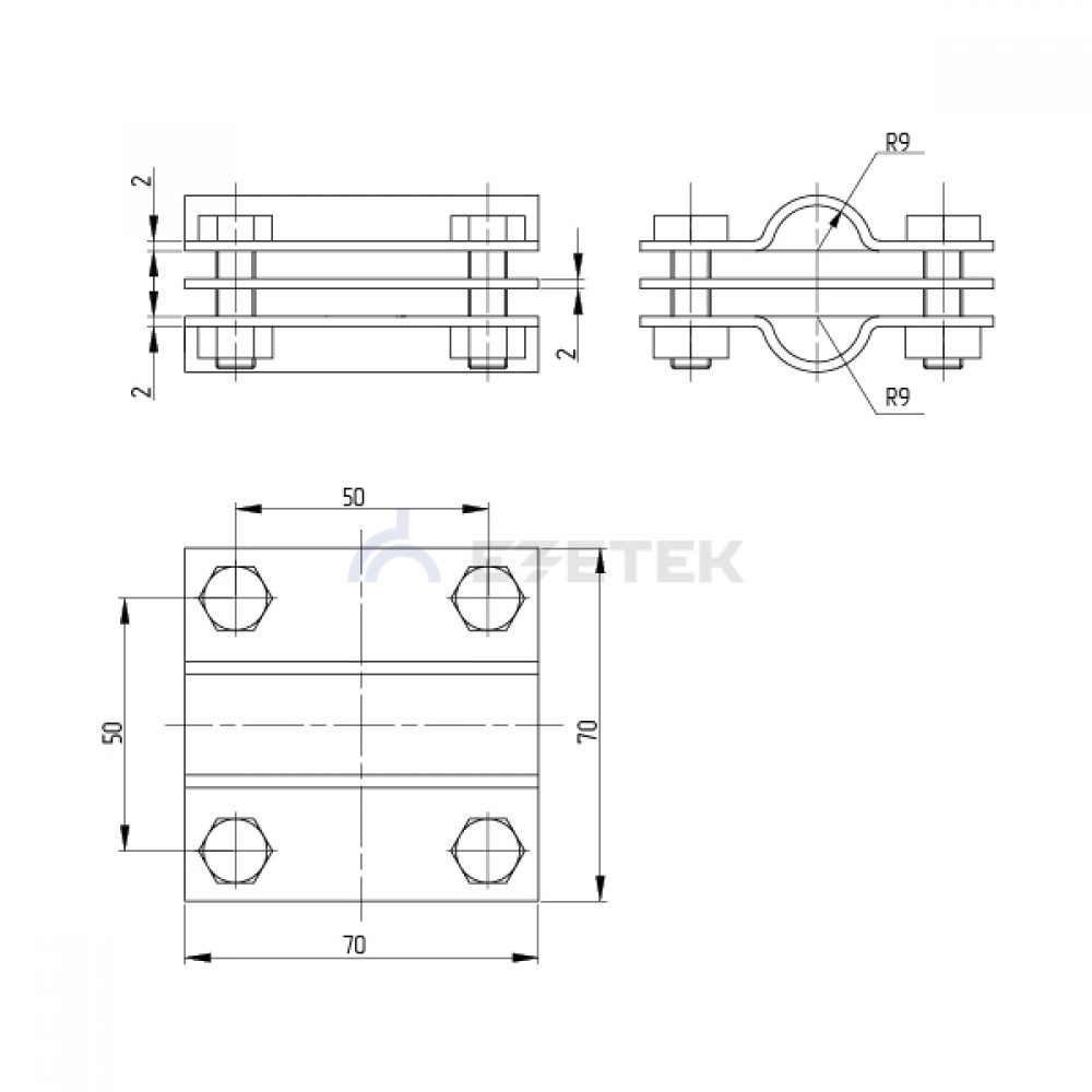 Зажим заземления стержень — стержень крестообразный используется в системах заземления для соединения стержня Ø 10-20 мм со стержнем Ø10-20 мм крестообразным или параллельным способом. Зажим состоит из 3-ех пластин, которые стягиваются при помощи четырех болтов М8х30 с гайкам.