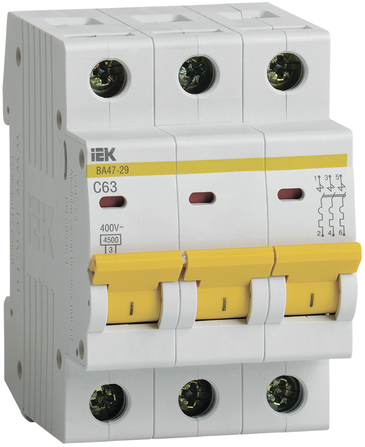 Автоматический выключатель "ИЭК" ВА47- 29 "С" 3P 63А MVA20-3-063-C