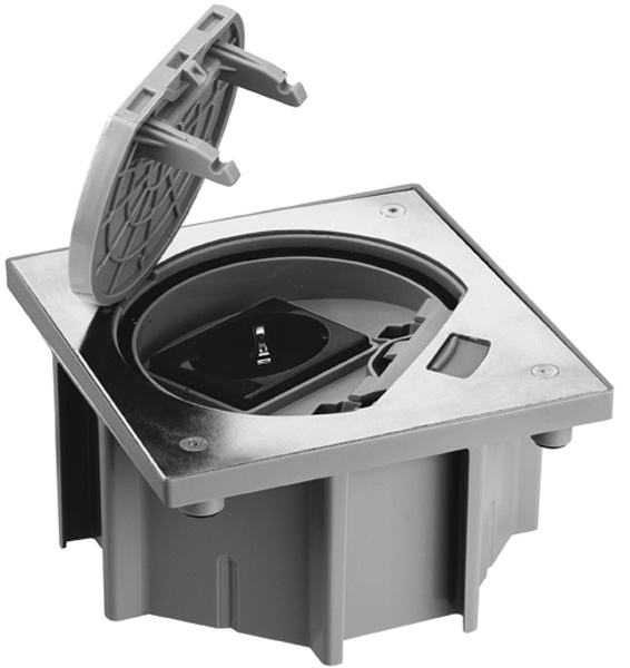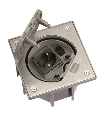 Лючок для монтажа в пол с розеткой SHUKO 2P+E и RJ45 в комплекте. Цвет - сталь.