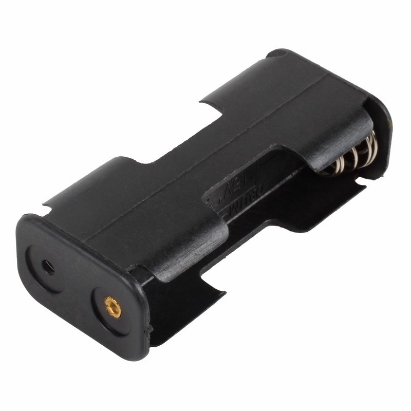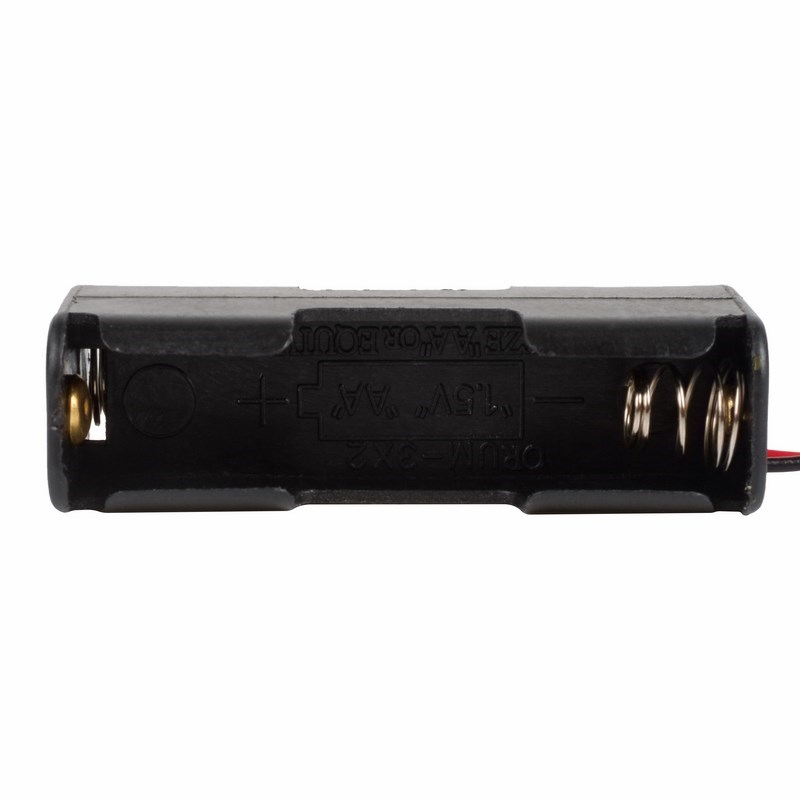 Батарейный отсек (держатель батареек) двухсторонний для двух батарей типоразмера АА с контактными проводами предназначен для подключения питания в различном оборудовании (в том числе в бытовых устройствах, игрушках и радиоуправляемых моделях). В целях ускорения и удобства монтажа держатель выполнен с двумя проводами (красного и черного цвета) длиной по 15 см, т. е. не требует пайки контактов. Окончания проводов подготовлены для дальнейшего монтажа: зачищены и облужены оловом. Суммарное напряжение при использовании 2 батареек на 1.5 В составит 3 В.
